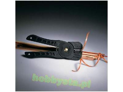 Giętarka (Szczypce) do listewek ułatwiająca ich formowanie. Urządzenie jest przydatne zwłaszcza przy formowaniu pierwszej (niewidocznej) warstwy poszycia na modelu drewnianym statku. Do wyginania listewek których obie strony będą widoczne (np. na nadburciu) polecamy elektryczną giętarkę która nie zostawia od wewnętrznej strony charakterystycznych nacięć.