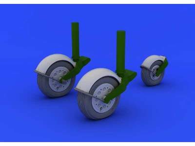 Brassit set of main landing gear wheels and nose wheel (with mud fenders) for HK Models 1/32 Meteor F.4.