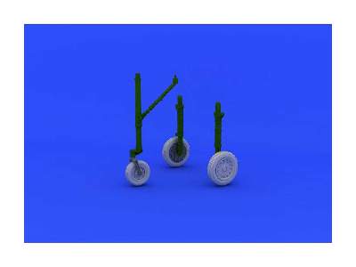 Brassin wheels set for A-4E/F in 48th scale by Eduard/Hasegawa. Set contains pair of main wheels, front wheel and wheel fork.