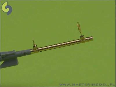 Set includes two turned brass barrels, slotted cooling jackets, turned sights and small etched plate with sights details. It is very simple to use in Your model, and makes it extremely realistic. Simply cut off the original plastic barrel and drill a hole in the remaining plastic parts and insert the metal barrel using Cyanoacrylate adhesives.