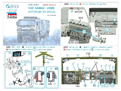 Kamaz-43509 - 3d-printed & Coloured Interior Small Version (For Zvezda Kits)